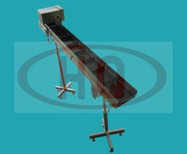 使用34mm鋁合金型材支架,皮帶傳送、驅(qū)動(dòng)。皮帶表面帶30mm高的擋板,可以進(jìn)行傾斜提升搬運(yùn)物品,適合搬運(yùn)形狀不規(guī)則的物品。標(biāo)準(zhǔn)配置含護(hù)欄??梢愿鶕?jù)需要將驅(qū)動(dòng)部安裝到上部或下部。