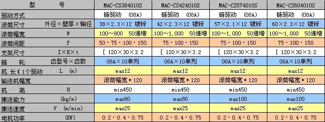 MAC-C系列鏈條驅動輸送機的滾筒使用摩擦離合式傳動,滾筒和鏈條之間可以有相對運動,以保證搬運的物品停止時,物品和滾筒之間沒有摩擦。