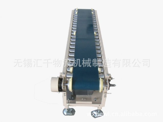 帶式輸送機的結構形式有:固定式帶式輸送機、爬升式帶式輸送機、大傾角帶式輸送機、移動式帶式輸送機等形式,輸送帶還可以加裝加強擋板、裙板等附件,以滿足各種工藝要求。輸送機兩側設有工作臺和燈座,可用作電子儀器裝配線、食品包裝帶機裝配線。