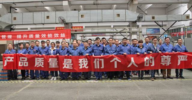 職工代表王道斌現場帶領大家高聲做出了“產品質量是我們個人的尊嚴”鄭重承諾。
