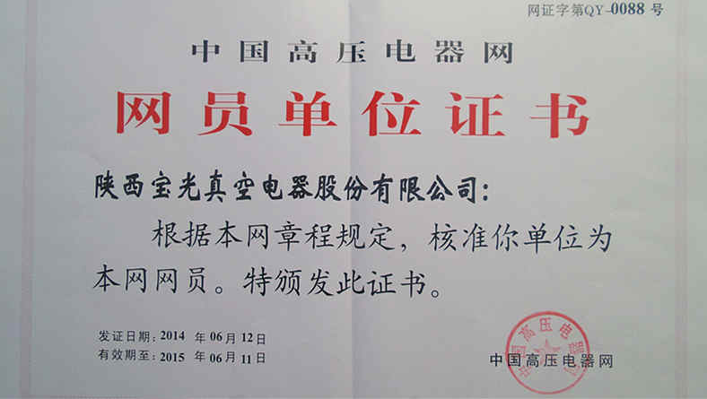 由西安高壓電器研究所主辦的中國(guó)高壓電器網(wǎng)經(jīng)過(guò)資格審查,于2014年6月份授予我公司為高壓電器會(huì)員單位。