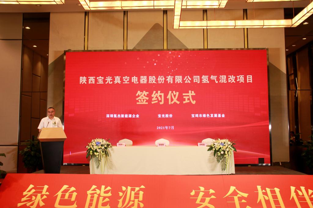 7月20日,陜西寶光真空電器股份有限公司氫氣混改項目簽約儀式在寶雞市海棠假日酒店海棠宴會廳舉行。