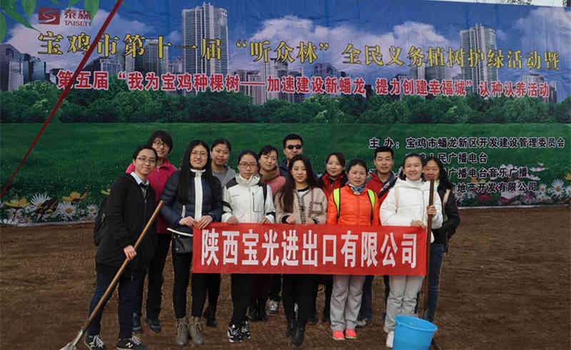 3月12日,在一年一度的植樹節(jié)到來之際,寶光進(jìn)出口公司的13名志愿者拿著鐵鍬,水桶等植樹工具來到了蟠龍新區(qū)光谷錦繡公園,參加了由寶雞廣播電臺組織的“我為寶雞種棵樹”學(xué)雷鋒活動。