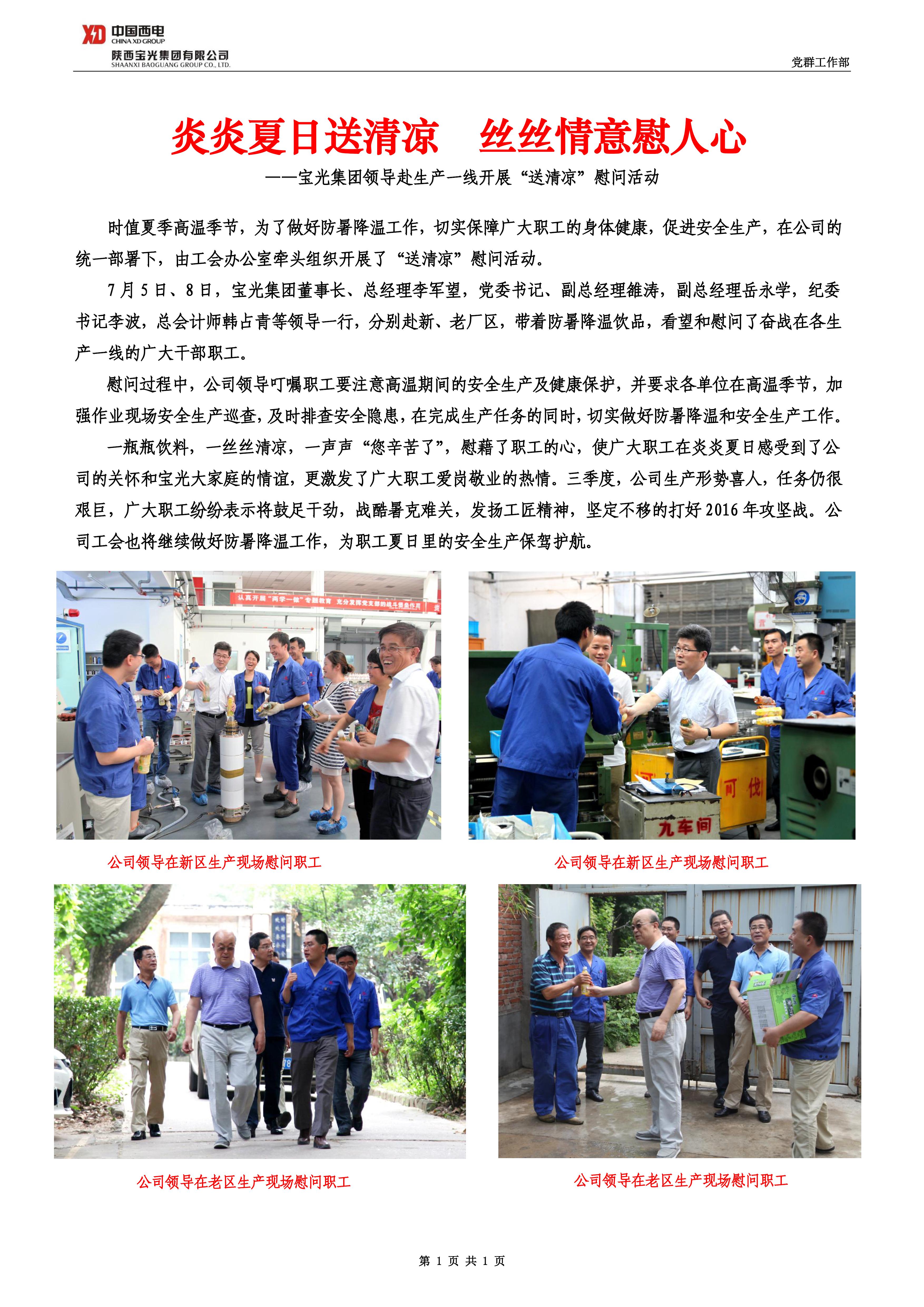 寶光集團領導赴生產一線開展“送清涼”慰問活動