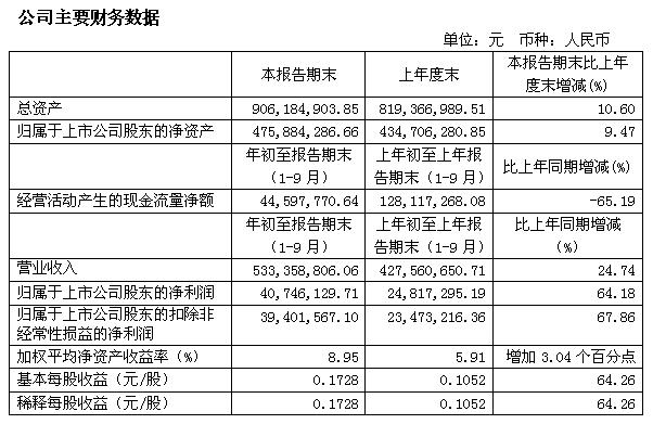 寶光股份2016年3季度主要財務指標