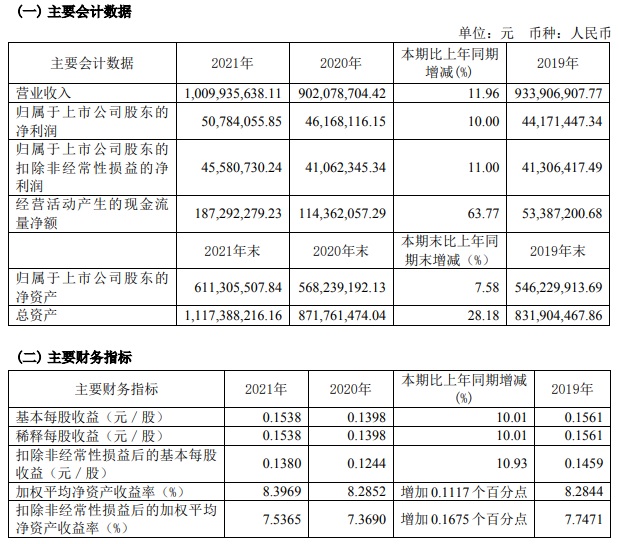 寶光股份2021年度主要財務指標